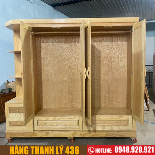 Tủ quần áo gỗ thông 4 cánh mới 99% thanh lý giá rẻ
