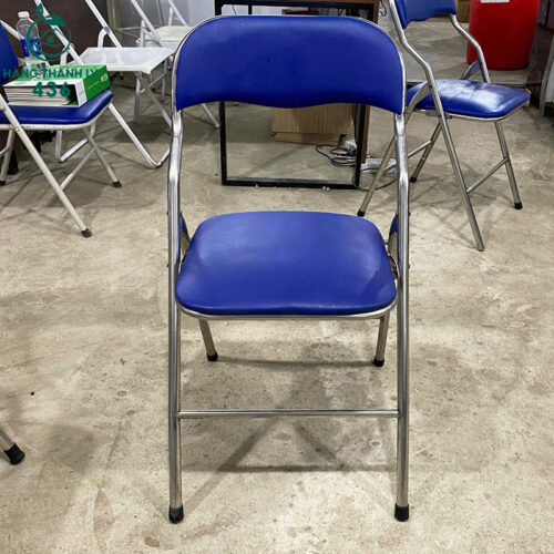 - Mô Tả: Ghế xếp inox bọc nệm simili màu xanh dương mang kiểu dáng đơn giản, dễ gấp gọn sau khi sử dụng. Mặt ghế và lưng tựa được bọc nệm êm, tạo cảm giác thoải mái khi ngồi lâu. Khung inox sáng bóng, chống gỉ tốt, chịu lực cao. Chân ghế có bọc nhựa chống trượt, bảo vệ nền nhà khi di chuyển. Gấp gọn nhẹ chỉ trong vài giây, tiện lợi khi cần di chuyển hoặc cất giữ.