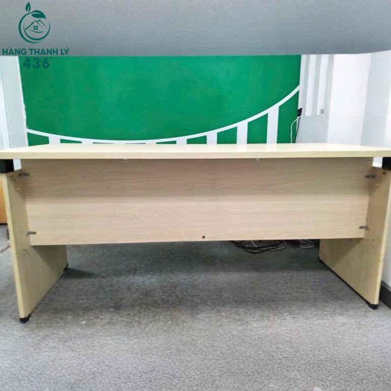 - Mô Tả: Chiếc bàn làm việc văn phòng này là hàng thanh lý, mới tới 90%, với kích thước lớn 1m6 lý tưởng cho vị trí trưởng phòng hoặc làm bàn họp nhóm nhỏ. Bàn được làm từ gỗ công nghiệp cao cấp, phủ Melamine màu vân gỗ sáng hiện đại, tạo cảm giác không gian thoáng đãng và sạch sẽ. Thiết kế đơn giản, chắc chắn với chân gỗ kín, đảm bảo sự vững chãi tuyệt đối và kín đáo cho người sử dụng. Bề mặt bàn rộng rãi giúp bạn thoải mái bố trí máy tính, tài liệu và các vật dụng cần thiết cho công việc.