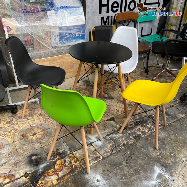 - Bàn ghế cafe nhựa: Bàn ghế cafe nhựa cũ nhẹ, dễ di chuyển, giá thành rẻ và phù hợp với quán cà phê bình dân, quán có nhu cầu bố trí linh hoạt.