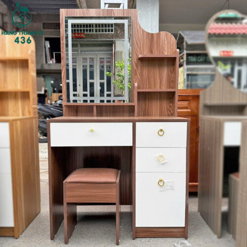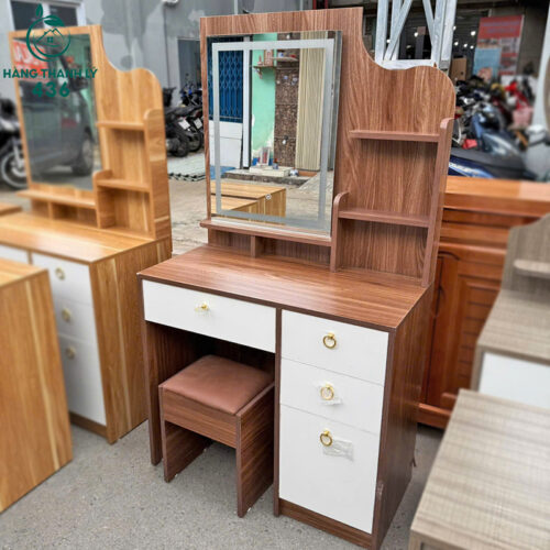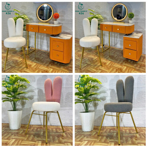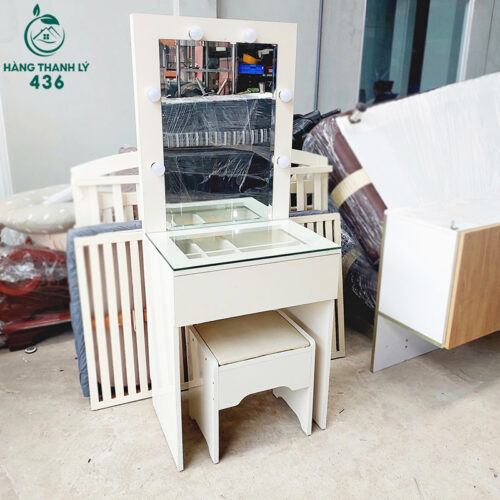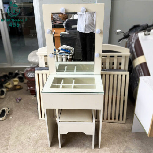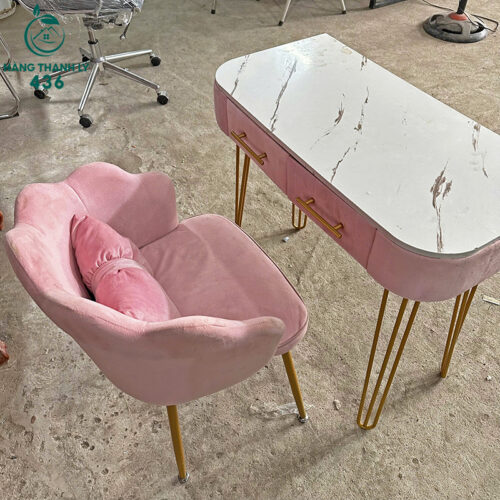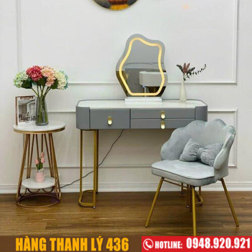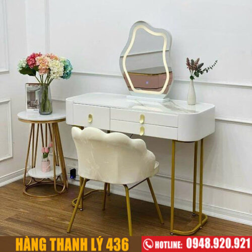 Bàn Ghế Trang Điểm Cũ Mặt Giả Đá Chân Kim Loại Màu Vàng Đồng