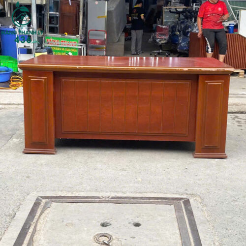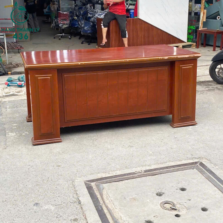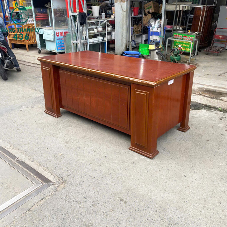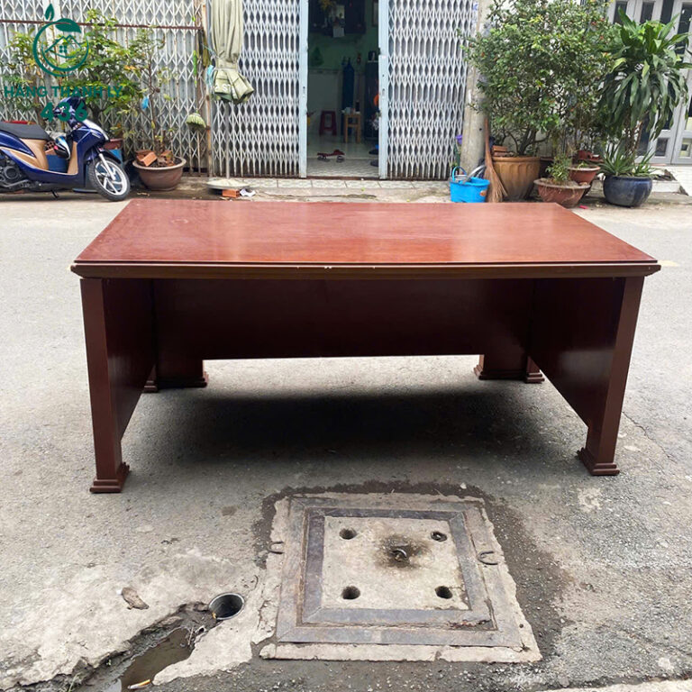 Mô Tả: Mẫu bàn làm việc cũ này có kích thước lớn, mặt bàn rộng rãi, phù hợp sử dụng làm bàn giám đốc, bàn làm việc quản lý hoặc bàn văn phòng riêng. Thiết kế dáng chữ nhật đơn giản, chân liền hai bên giúp bàn đứng vững, không rung lắc khi sử dụng. Mặt bàn phẳng, dễ bố trí máy tính, hồ sơ, sổ sách và các vật dụng cần thiết. Màu gỗ nâu trầm tạo cảm giác sang trọng, lịch sự, phù hợp nhiều không gian văn phòng hoặc phòng làm việc tại nhà. Bàn còn sử dụng tốt, kết cấu chắc chắn, mua về dùng ngay không cần sửa chữa.