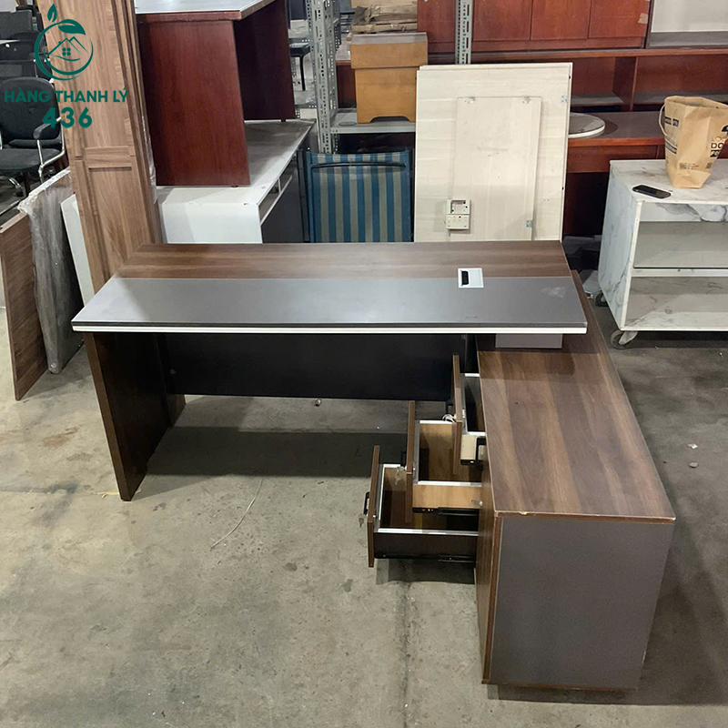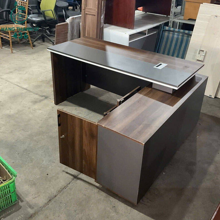 Mô Tả: Mẫu bàn giám đốc này được sản xuất từ chất liệu gỗ MFC phủ Melamine cao cấp, mang lại khả năng chống trầy xước và chống thấm nước cực tốt. Với cấu trúc hình chữ L rộng rãi, mặt bàn chính dài 1m6 kết hợp cùng tủ phụ 1m4 giúp tối ưu hóa không gian làm việc, cho phép bạn thoải mái đặt máy tính, hồ sơ và các vật dụng trang trí. Điểm nổi bật là phần tủ hộc kéo đi kèm có khóa an toàn, giúp bảo quản tài liệu quan trọng một cách bảo mật. Thiết kế chân bàn dạng khối vững chãi, phối màu vân gỗ trầm cùng tone xám hiện đại, tạo nên vẻ uy nghiêm và chuyên nghiệp cho người lãnh đạo. Đây là sản phẩm hoàn hảo cho phòng trưởng phòng hoặc giám đốc đang tìm kiếm nội thất chất lượng với chi phí tối ưu.