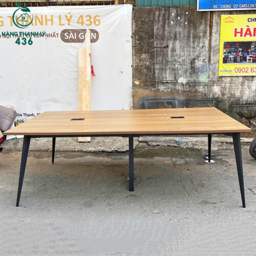 - Mô tả: Bàn họp cũ với thiết kế rộng rãi, phù hợp cho văn phòng, phòng họp công ty. Mặt bàn làm từ gỗ công nghiệp phủ melamine vân gỗ, tạo cảm giác sang trọng, dễ lau chùi và chống trầy xước. Khung chân sắt sơn tĩnh điện chắc chắn, đảm bảo độ bền cao và không rung lắc khi sử dụng. Trên mặt bàn có tích hợp lỗ luồn dây điện giúp không gian làm việc gọn gàng hơn. Kiểu dáng đơn giản, hiện đại, dễ kết hợp với nhiều loại ghế văn phòng.