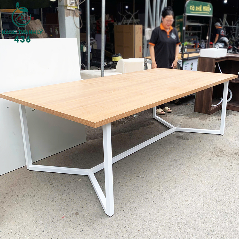 Thanh Lý Bàn Họp Chân Sắt Mặt Gỗ Mới 90%