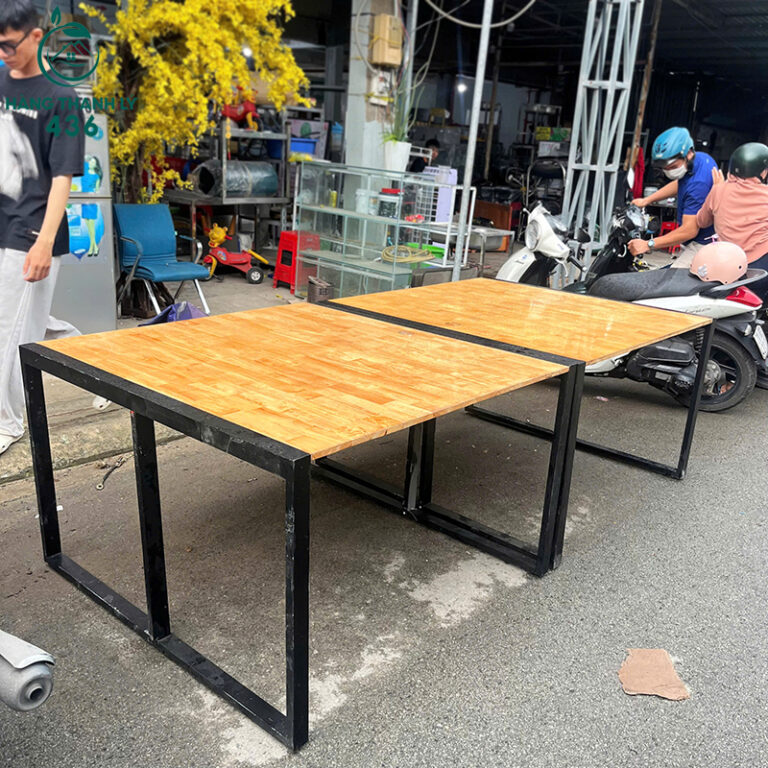 - Chất Liệu: Bàn Mặt gỗ cao su, chân sắt sơn tĩnh điện