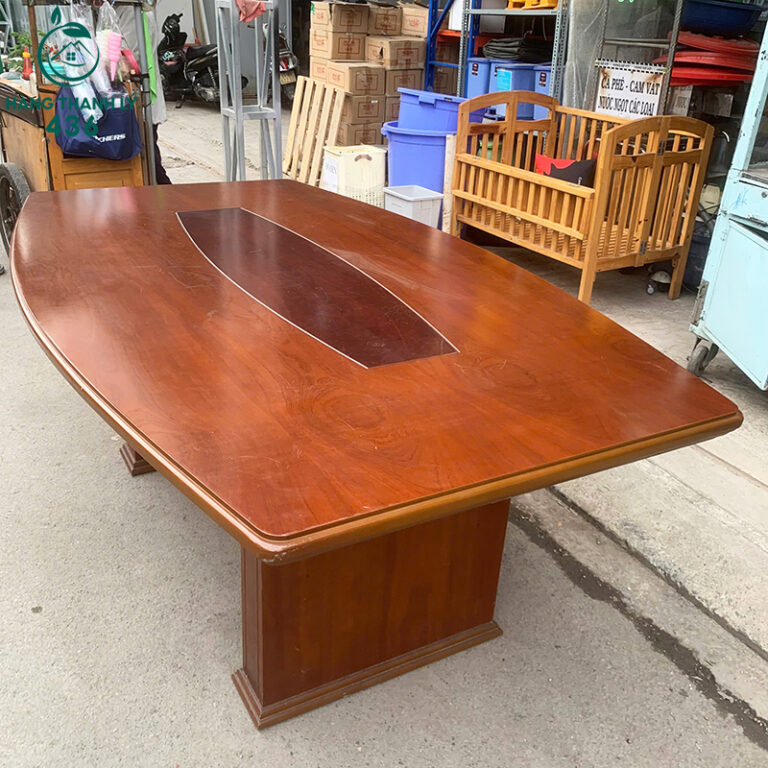 Bàn Họp Gỗ Cũ 2MX1M2X80CM Dáng Oval Màu Nâu