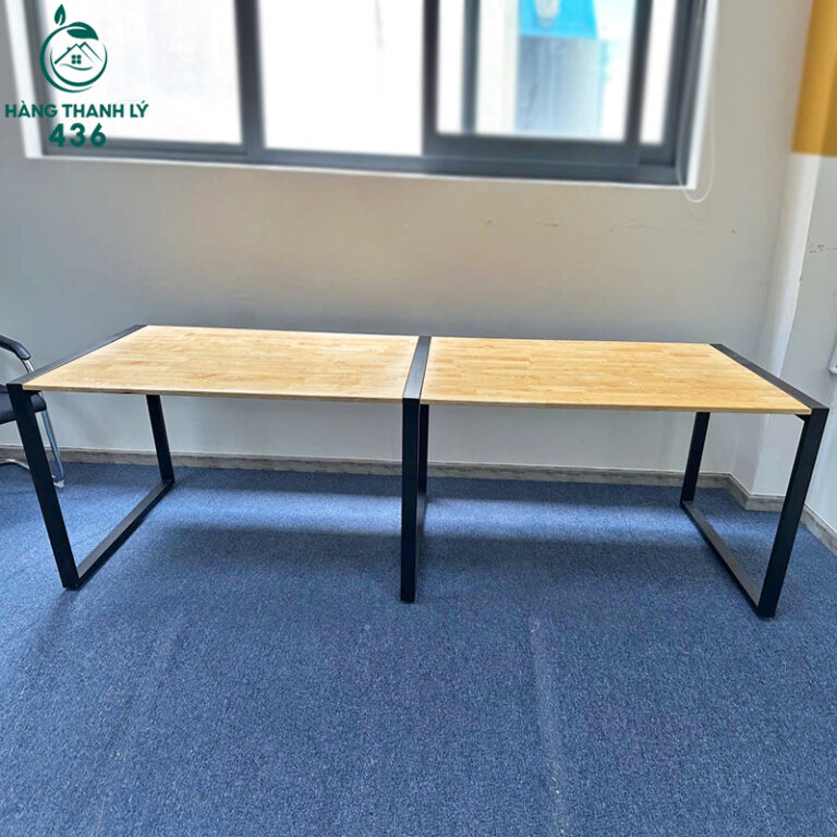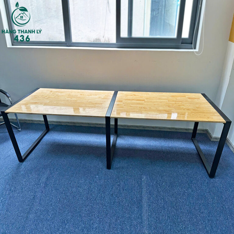 Bàn Họp Gỗ Cũ 80CMx2M Chân Sắt Sơn Đen Chắc Chắn
