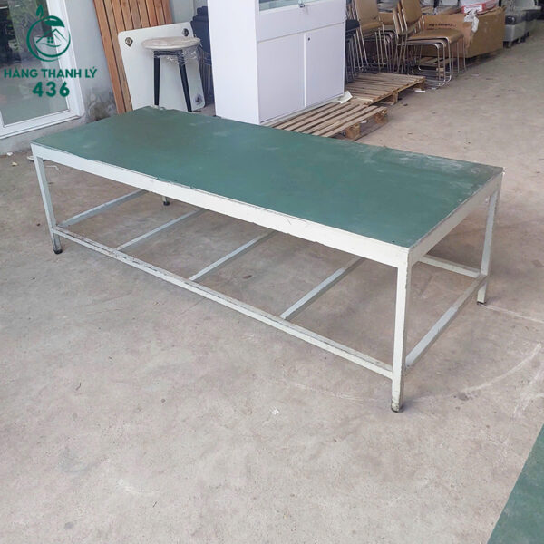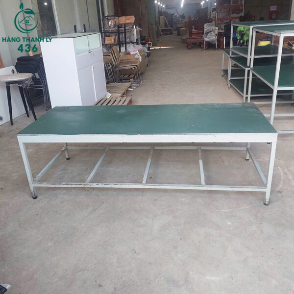 - Mô Tả: Chiếc bàn kệ 2 tầng này là giải pháp lý tưởng cho không gian làm việc công nghiệp hoặc khu vực cần lưu trữ dụng cụ. Bàn có khung sắt sơn tĩnh điện màu trắng/bạc cực kỳ chắc chắn, đảm bảo khả năng chịu lực nặng và độ bền vượt trội theo thời gian. Mặt bàn và kệ dưới làm bằng gỗ công nghiệp phủ màu xanh, dễ lau chùi, chống thấm nước nhẹ. Thiết kế 2 tầng giúp tối ưu hóa không gian, bạn có thể sử dụng tầng trên để thao tác và tầng dưới để chứa nguyên vật liệu hoặc hộp đựng đồ. Mua bàn thanh lý này giúp bạn tiết kiệm chi phí đáng kể, sở hữu ngay món nội thất công nghiệp bền bỉ, sử dụng được lâu dài.