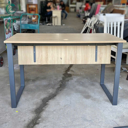 - Mô tả: Bàn làm việc cũ thiết kế chắc chắn, khung chân sắt chữ U sơn tĩnh điện màu xám phối mặt gỗ màu sáng. Phía trước có yếm gỗ che chân, tạo cảm giác riêng tư hơn khi ngồi làm việc. Mặt bàn rộng rãi phù hợp đặt máy tính, tài liệu hoặc sử dụng trong phòng học. Kiểu dáng đơn giản, hiện đại, dễ kết hợp ghế văn phòng hoặc ghế chân quỳ. Rất thích hợp cho văn phòng nhỏ, cơ sở đào tạo hoặc làm bàn làm việc tại nhà.