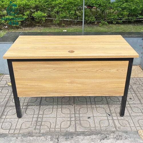 - Mô tả: Bàn làm việc văn phòng với thiết kế đơn giản và tiện dụng. Mặt bàn được làm từ gỗ công nghiệp chống trầy xước và dễ vệ sinh. Khung chân sắt sơn tĩnh điện màu đen chắc chắn, chịu lực tốt. Phía dưới có yếm bàn giúp che chắn và tạo sự riêng tư khi sử dụng. Bàn có lỗ luồn dây điện gọn gàng, phù hợp để làm việc hoặc học tập.