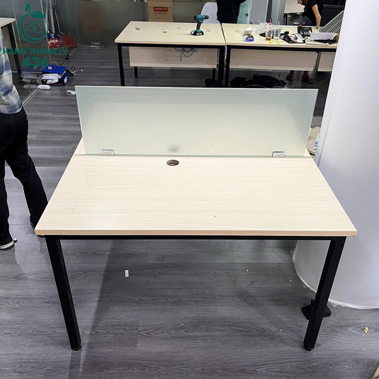 Mô Tả: Đây là chiếc bàn làm việc cá nhân lý tưởng cho môi trường văn phòng hiện đại. Mặt bàn rộng rãi giúp bạn thoải mái sắp xếp máy tính và các vật dụng cần thiết. Điểm nổi bật là vách ngăn kính mờ, giúp tạo không gian riêng tư cần thiết, giảm sự xao nhãng nhưng vẫn đảm bảo sự kết nối và ánh sáng. Bàn có lỗ luồn dây điện thông minh, giữ cho khu vực làm việc luôn gọn gàng, ngăn nắp. Khung sắt chắc chắn đảm bảo bàn đứng vững, không rung lắc, mang lại độ bền cao. Chiếc bàn cũ này là sự đầu tư tiết kiệm, nâng cao hiệu suất làm việc của bạn ngay lập tức.