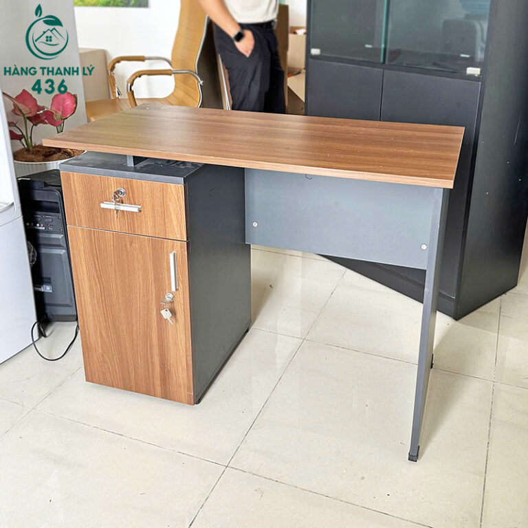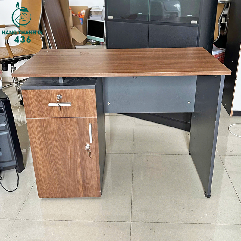 - Mô Tả: Chiếc bàn làm việc này có thiết kế nhỏ gọn, hiện đại với gam màu nâu vân gỗ kết hợp xám tối, tạo cảm giác sang trọng và chuyên nghiệp. Mặt bàn phẳng, rộng vừa đủ để đặt máy tính, tài liệu và các vật dụng văn phòng cần thiết. Bên trái bàn được trang bị một ngăn kéo nhỏ và hộc tủ kín, rất tiện cho việc lưu trữ hồ sơ, giấy tờ và bảo quản đồ cá nhân an toàn. Phần khung bàn được làm từ gỗ công nghiệp chắc chắn, bền bỉ, dễ dàng vệ sinh và phù hợp với môi trường làm việc lâu dài. Với kiểu dáng vuông vắn, đơn giản nhưng tinh tế, sản phẩm này đặc biệt thích hợp cho các không gian văn phòng, phòng làm việc tại nhà hoặc bàn học, vừa tiết kiệm diện tích vừa mang lại sự gọn gàng và tiện dụng.