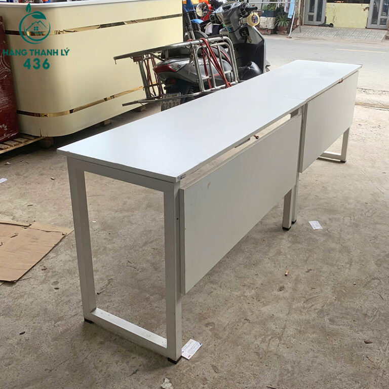 Thanh Lý Bàn Làm Việc Nhóm Chân Sắt Trắng Mới 90%