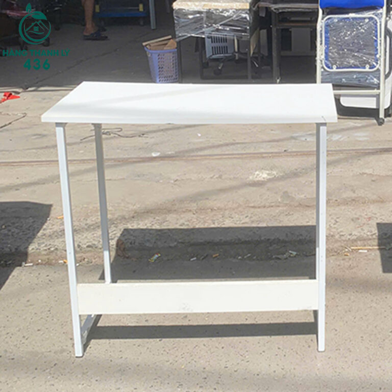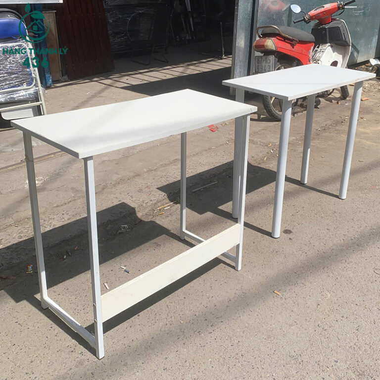 Mô Tả: Hai mẫu bàn này là lựa chọn tiết kiệm và đa năng cho nhiều không gian khác nhau, từ bàn làm việc cá nhân, bàn học sinh đến bàn phụ văn phòng. Cả hai đều có mặt bàn gỗ công nghiệp màu trắng sáng, mang lại vẻ ngoài sạch sẽ, hiện đại và dễ dàng phối hợp với các nội thất khác. Khung và chân bàn đều làm bằng sắt, đảm bảo độ chắc chắn và khả năng chịu lực tốt. Một mẫu có chân trụ ống tròn tối giản, mẫu còn lại có chân vuông kết hợp thanh giằng bên dưới tăng độ ổn định. Mua bàn thanh lý giúp bạn tiết kiệm chi phí mà vẫn đảm bảo hiệu suất sử dụng lâu dài.