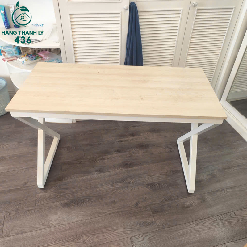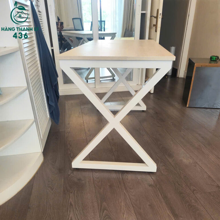 Mô Tả: Bàn làm việc thanh lý thiết kế chân chữ X tạo điểm nhấn hiện đại, form gọn gàng, đặt trong phòng làm việc tại nhà hoặc văn phòng đều phù hợp. Mặt bàn rộng rãi, đủ chỗ để laptop, màn hình, sổ sách và đồ dùng cá nhân. Khung chân thiết kế vững, không rung lắc khi sử dụng lâu dài. Màu trắng kết hợp mặt gỗ sáng giúp không gian nhìn thoáng và sạch sẽ hơn. Bàn đã qua sử dụng nhưng còn đẹp, kết cấu chắc chắn, mua về dùng ngay không cần sửa chữa.