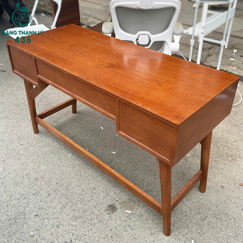 - Mô Tả: Bàn gỗ này phù hợp để làm việc, có 3 ngăn kéo rộng rãi giúp bạn dễ dàng phân loại và cất giữ giấy tờ, đồ dùng cá nhân hay phụ kiện nhỏ. Mặt bàn láng mịn, dễ lau chùi, không bám bụi. Chân bàn chắc chắn, chịu lực tốt, không bị rung lắc khi sử dụng. Thiết kế đơn giản nhưng tiện dụng, dễ phối với nhiều không gian nội thất. Gỗ tự nhiên nên rất bền, không bị cong vênh hay mối mọt. Mua bàn thanh lý giúp tiết kiệm chi phí mà vẫn có đồ dùng chất lượng cao.