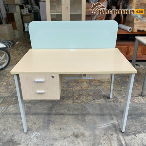 - Mô tả: Bàn làm việc thiết kế có vách ngăn, có thể ghép với bàn khác thành bàn cụm nhiều chỗ ngồi tiết kiệm không gian, có lá chắn ngăn ở giữa, tạo sự tập trung tối đa khi làm việc. Thiết kế gọn gàng với 2 hộc kéo để đựng đồ, tài liệu,… Mặt bàn phủ lớp Melamine là lớp phủ bề mặt giúp gỗ chống trầy xước, chống ẩm, chống cháy. Chân bàn chắc chắn, bền bỉ, không lung lay hay bập bênh. Phù hợp với mọi không gian làm việc, học tập.