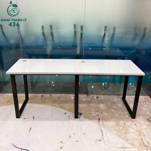 - Mô Tả: Bàn làm việc có thiết kế hiện đại, tối giản với mặt bàn màu trắng sáng kết hợp khung chân sắt đen vững chắc. Mặt bàn phẳng, dễ dàng vệ sinh, thích hợp cho các công việc văn phòng hoặc học tập. Chất liệu sắt chịu lực tốt và chống gỉ, giúp bàn bền bỉ theo thời gian. Bàn còn được trang bị hai lỗ để đi dây điện, rất thuận tiện cho việc sử dụng các thiết bị điện tử như máy tính, điện thoại. Với thiết kế thanh thoát, bàn phù hợp với không gian làm việc hiện đại, văn phòng mở, hoặc các không gian nhỏ gọn nhưng cần sự tiện dụng và thẩm mỹ cao.