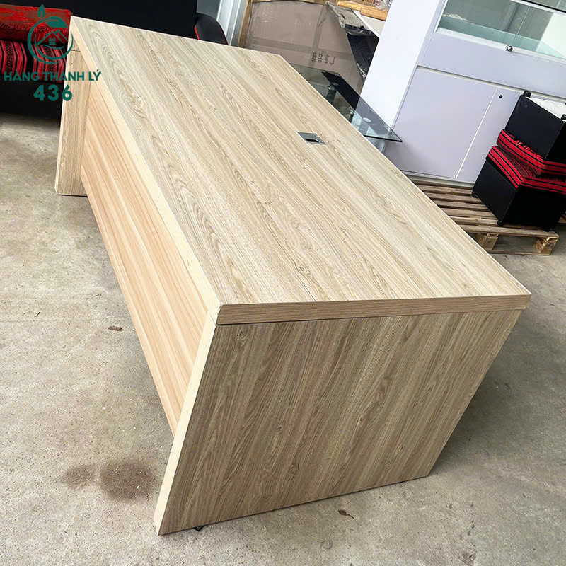 - Mô Tả: Thanh lý mẫu bàn làm việc văn phòng mang phong cách hiện đại, tối giản, là lựa chọn lý tưởng cho mọi không gian làm việc chuyên nghiệp. Bàn có thiết kế hình chữ nhật vững chãi với kiểu dáng chân cạnh liền tấm, được làm từ gỗ công nghiệp. Sự phối hợp nhẹ nhàng giữa hai tông màu vân gỗ sáng mang lại vẻ ngoài tươi mới và trang nhã. Mặt bàn rộng rãi, được trang bị sẵn nắp luồn dây điện thông minh, giúp không gian của bạn luôn gọn gàng.