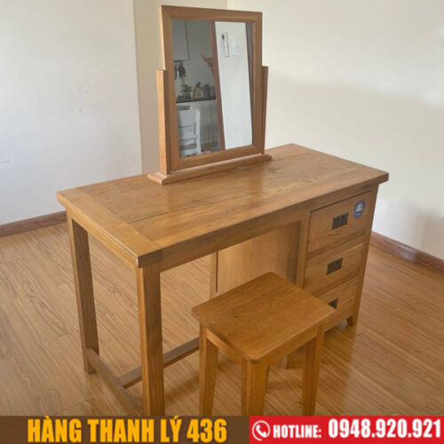 - Mô tả: Bàn phấn trang điểm cũ là hàng đã qua sử dụng nhưng chất lượng đẹp như mới, mua về dùng được ngay. Sản phẩm gồm bàn trang điểm kính hình chữ nhật, có các ngăn kéo để bỏ đồ dùng, ghế đẩu cứng cáp.