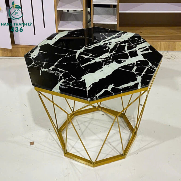 Bàn Sofa Mặt Kính Màu Đen Vân Trắng Mới 95%