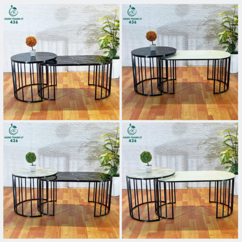 - Mô tả: Bàn sofa đôi oval này có thiết kế tinh tế và hiện đại với hai bàn kết hợp, kích thước khác nhau giúp tối ưu hóa không gian. Mặt bàn được làm từ kính cường lực với màu sắc trang nhã, tạo sự hài hòa và phong cách cho không gian nội thất. Phần khung chân kim loại được sơn đen chắc chắn, không chỉ bền mà còn mang đến vẻ đẹp hiện đại, sang trọng. Đây là mẫu bàn lý tưởng cho phòng khách, văn phòng hay quán cafe, tạo điểm nhấn độc đáo cho không gian sống. Có nhiều sự phối hợp màu sắt của mặt bàn khác nhau cho khách hàng lựa chọn. Xem thêm tại hình ảnh dưới đây nhé!
