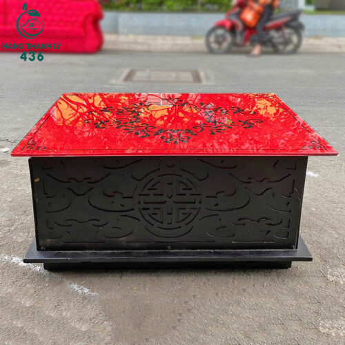 Bàn Sofa Mặt Kính Đỏ Hoa Văn Cổ Điển Cũ
