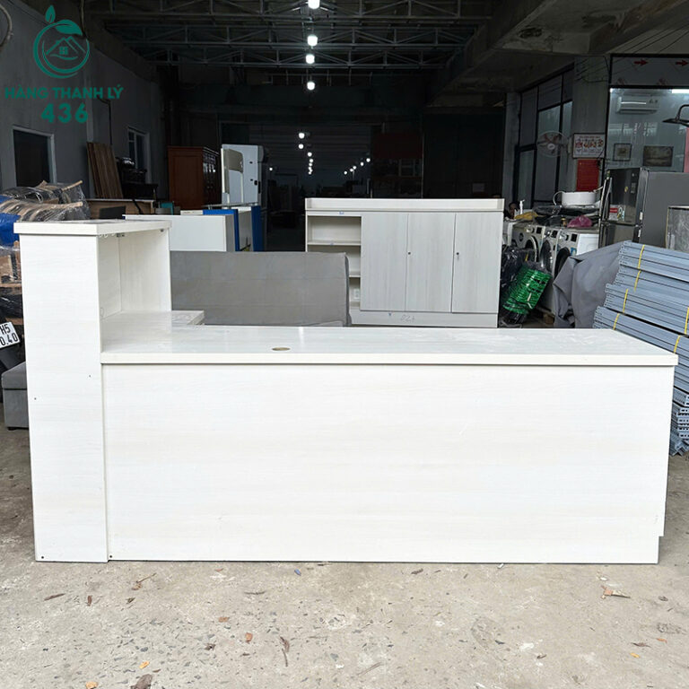 Chiếc quầy lễ tân cũ kích thước lớn này hiện đang được thanh lý gấp tại Hàng Thanh Lý 436 với mức giá cực kỳ hấp dẫn. Sản phẩm cũ còn rất mới, được kiểm tra kỹ lưỡng về độ bền và thẩm mỹ. Quý khách hãy đến xem trực tiếp tại kho để kiểm tra và cảm nhận sự đẳng cấp của chiếc quầy cũ này.