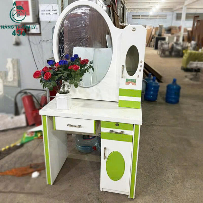 Bàn Trang Điểm Cũ Màu Xanh Phối Trắng Tích Hợp Nhiều Ngăn