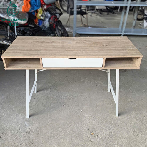 - Mô tả: Bàn trang điểm gỗ cũ thiết kế nhỏ gọn, kiểu dáng đơn giản, phù hợp cho phòng trọ, căn hộ mini hoặc không gian cá nhân riêng. Mặt bàn rộng rãi, có 1 ngăn kéo ở giữa và 2 hộc bên hông để đựng mỹ phẩm, phụ kiện. Chân sắt chắc chắn, chịu lực tốt, không rung lắc. Dễ dàng di chuyển, dễ lau chùi, giữ sạch lâu.