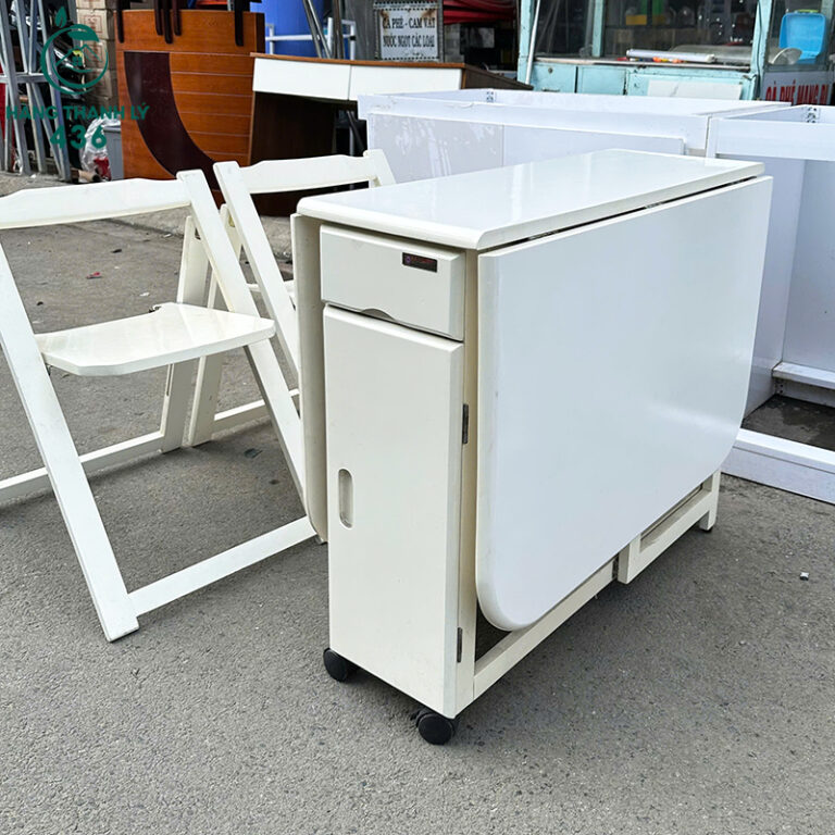 Thanh Lý Bộ Bàn Ăn Gấp Gọn Màu Trắng Mới 90%