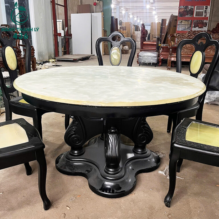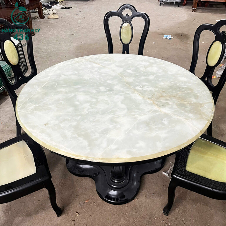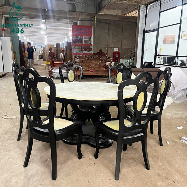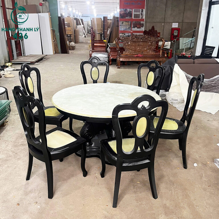 Bộ Bàn Ăn Cũ Mặt Đá Tròn 1M3 6 Ghế Hàng Đẹp