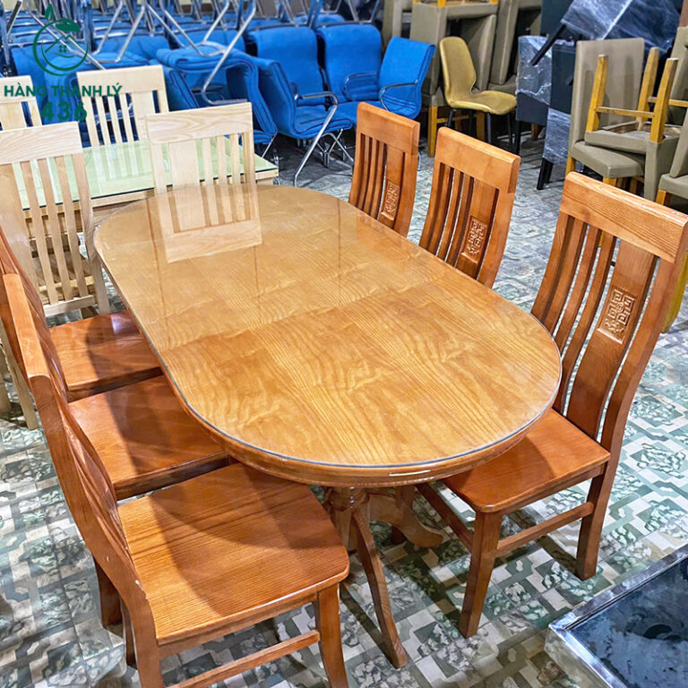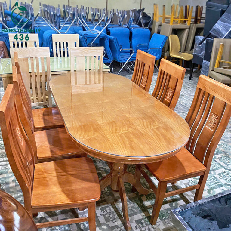 Bộ bàn ăn oval gỗ sồi này là sự lựa chọn lý tưởng cho những ai yêu thích sự sang trọng và bền bỉ. Ngoài ra, Hàng Thanh Lý 436 còn rất nhiều sản phẩm bàn ăn thanh lý với kiểu dáng và kích thước khác nhau, luôn sẵn sàng phục vụ mọi nhu cầu của bạn!