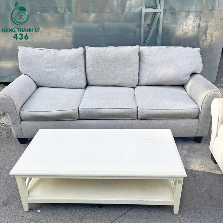- Mô Tả: Bộ sofa gồm một ghế băng ba, một ghế đơn và bàn trà, mang thiết kế hiện đại pha chút cổ điển với tông màu xám nhạt trung tính, dễ phối hợp với nhiều kiểu nội thất. Sofa có kiểu dáng bo tròn ở phần tay vịn, đệm dày và lưng tựa lớn tạo cảm giác êm ái và thoải mái khi sử dụng lâu. Chất liệu vải bọc mềm mịn, thoáng khí, phù hợp với khí hậu nhiệt đới và dễ vệ sinh. Chân ghế gỗ sơn đen chắc chắn, đảm bảo độ bền và ổn định. Bàn trà đi kèm có thiết kế đơn giản, mặt bàn rộng cùng kệ bên dưới tiện lợi để sách báo hoặc đồ trang trí nhỏ. Bộ sản phẩm rất thích hợp đặt tại phòng khách căn hộ, nhà phố hoặc văn phòng tiếp khách, mang lại sự trang nhã, thân thiện và tiện nghi cho không gian sống.