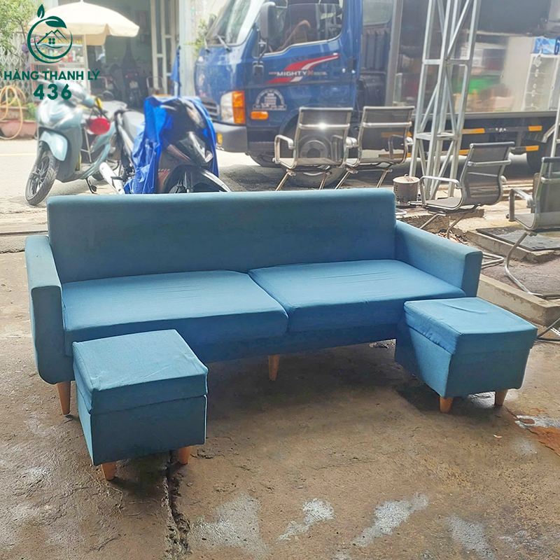 - Mô Tả: Bộ sofa băng dài màu xanh dương mang phong cách trẻ trung và hiện đại, rất dễ tạo điểm nhấn cho không gian sống. Thiết kế gồm một băng sofa rộng rãi đi kèm hai ghế đôn tiện lợi, có thể dùng để kê chân hoặc làm ghế ngồi phụ khi tiếp khách. Khung ghế chắc chắn, nệm ngồi và tựa lưng bọc vải màu xanh mát mắt, tạo cảm giác thoải mái và thoáng đãng. Chân ghế bằng gỗ màu sáng, nhỏ gọn nhưng vững chắc, giúp tổng thể sản phẩm thêm phần tinh tế. Với kích thước vừa phải, bộ sofa này phù hợp cho phòng khách gia đình nhỏ, căn hộ chung cư hay quán cà phê mang phong cách hiện đại.