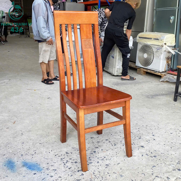 Mô Tả: Ghế ăn được làm từ gỗ tự nhiên với kết cấu chắc chắn, giúp người ngồi cảm thấy ổn định và an tâm khi sử dụng. Phần lưng cao thiết kế thanh dọc tạo sự thông thoáng và hỗ trợ tựa lưng thoải mái khi ngồi lâu. Bề mặt ghế nhẵn, dễ lau chùi và phù hợp sử dụng trong gia đình hoặc quán ăn. Chất liệu gỗ tự nhiên có độ bền cao, chịu lực tốt và sử dụng lâu dài nếu bảo quản đúng cách . Kiểu dáng đơn giản, dễ kết hợp với nhiều loại bàn ăn khác nhau.