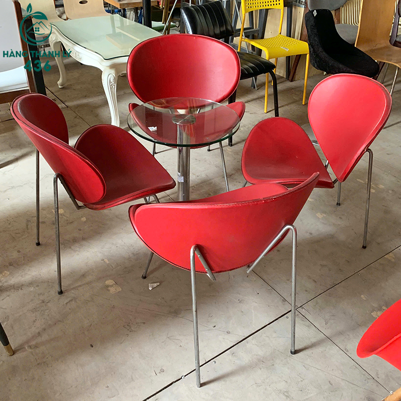Bàn Ghế Cafe Cũ Màu Đỏ Thiết Kế Hình Cong