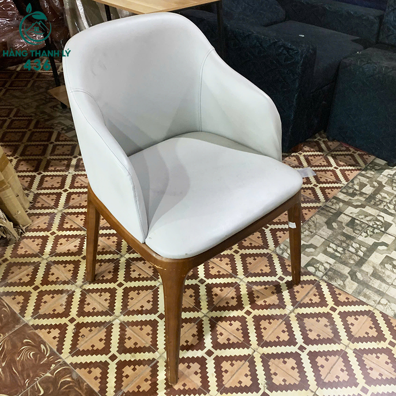 Ghế Cafe Cũ Nệm Da Màu Trắng Chân Gỗ Sang Trọng