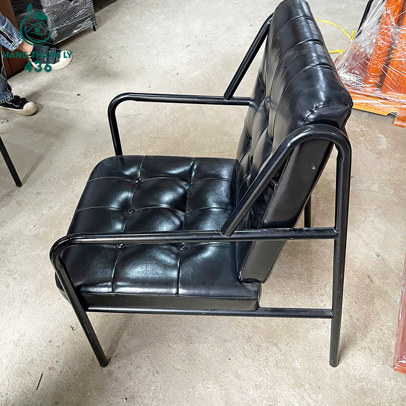 Thanh Lý Mẫu Ghế Cafe Khung Sắt Đệm Da Màu Đen Độc Đáo