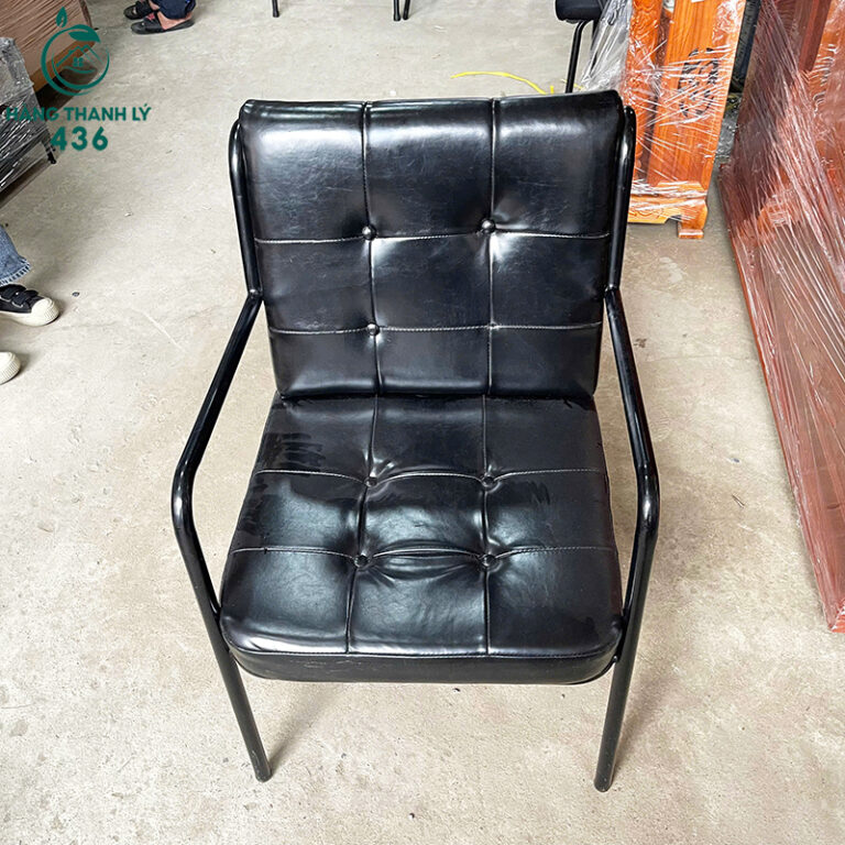 - Mô Tả: Chiếc ghế bọc da màu đen với thiết kế hiện đại và sang trọng, phù hợp cho các không gian làm việc, phòng khách hoặc văn phòng. Ghế có khung kim loại màu đen chắc chắn, kết hợp với đệm da bền bỉ, tạo sự thoải mái cho người sử dụng. Mặt ghế và tựa lưng được may chần với các nút bấm trang trí, mang lại vẻ đẹp cổ điển và thanh lịch. Thiết kế ghế giúp nâng đỡ cơ thể một cách thoải mái, đặc biệt phù hợp cho những không gian yêu cầu sự tinh tế và chuyên nghiệp. Với kiểu dáng tối giản nhưng tinh xảo, chiếc ghế này dễ dàng hòa hợp với nhiều loại nội thất và không gian khác nhau.