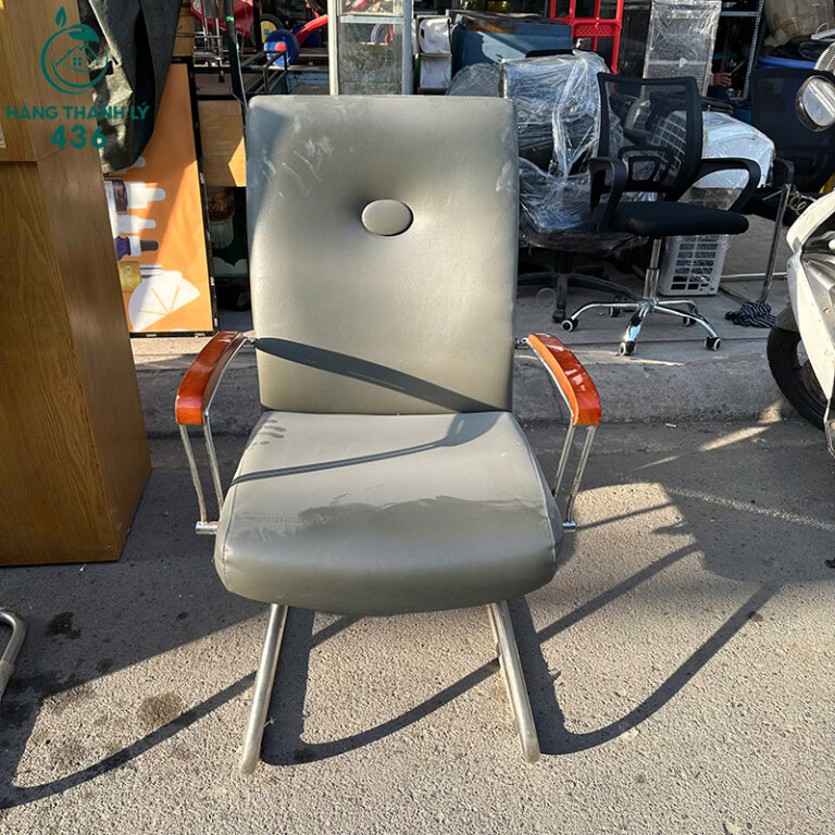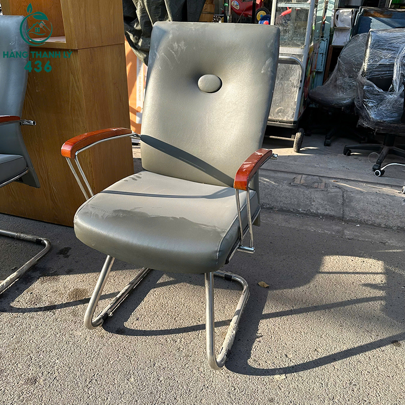 Mô Tả: Mẫu ghế chân quỳ thiết kế đơn giản, phù hợp sử dụng cho phòng họp, phòng làm việc hoặc khu vực tiếp khách. Phần đệm ngồi và lưng tựa bọc da màu xám, ngồi êm và dễ lau chùi. Tay ghế ốp gỗ tạo cảm giác chắc chắn khi ngồi lâu. Chân quỳ khung inox giúp ghế đứng vững, hạn chế rung lắc trong quá trình sử dụng. Kiểu dáng gọn gàng, dễ xếp đặt theo hàng, phù hợp văn phòng cần bố trí nhiều ghế cùng lúc. Ghế thanh lý còn sử dụng tốt, giúp tiết kiệm chi phí đầu tư.