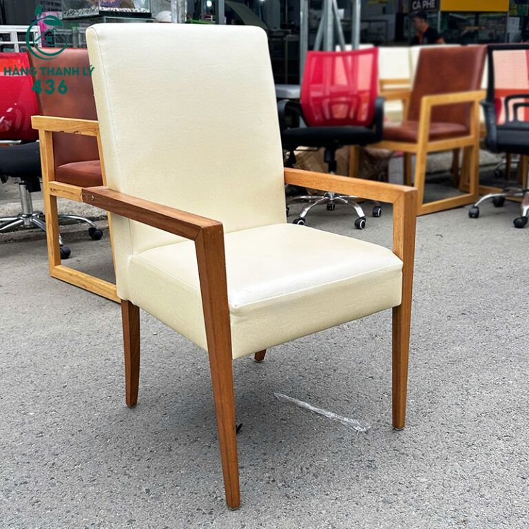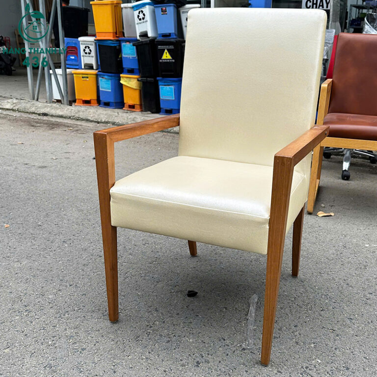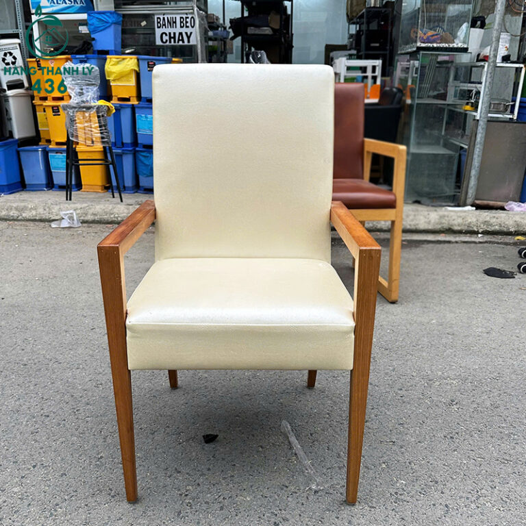 - Mô Tả: Chiếc ghế đơn này mang lại vẻ ngoài sang trọng, cổ điển nhưng vẫn rất hiện đại. Ưu điểm nổi bật là khung gỗ tự nhiên chắc chắn, tuổi thọ cao. Phần đệm bọc da công nghiệp không chỉ đẹp mắt mà còn chống thấm nước, giúp việc vệ sinh rất dễ dàng, chỉ cần lau nhẹ. Ghế có tay vịn, độ cao vừa phải, mang lại cảm giác dễ chịu khi ngồi. Mua ghế thanh lý này là sự lựa chọn hoàn hảo để nâng cấp không gian với chi phí tối ưu nhất.