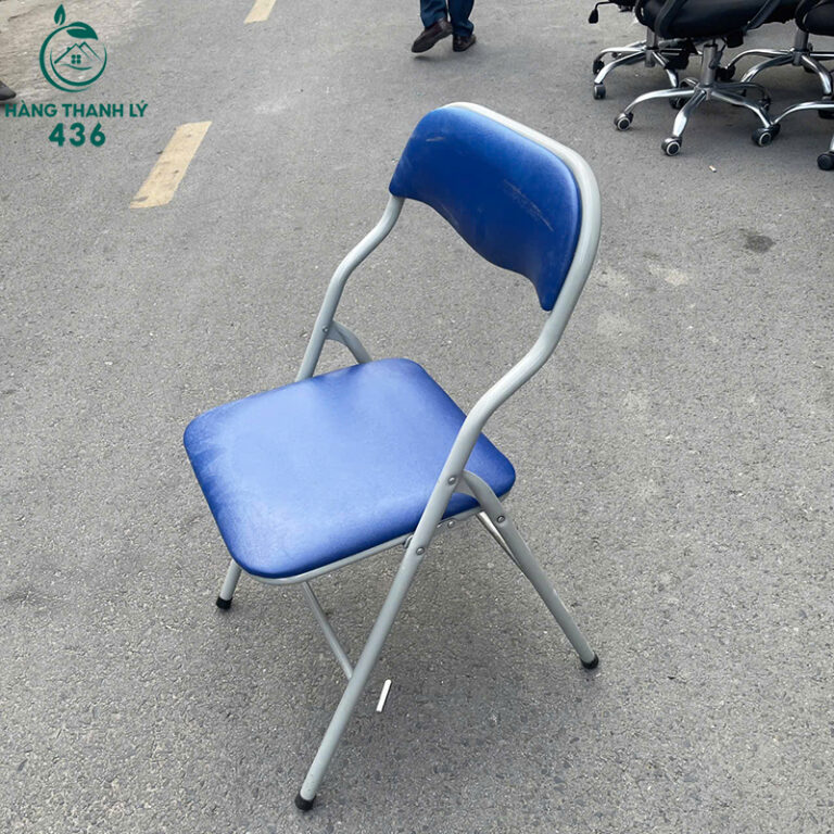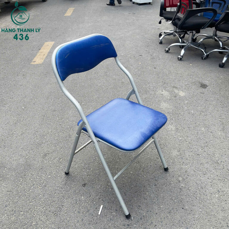 - Mô Tả: Chiếc ghế xếp thanh lý này là một giải pháp tiện lợi và gọn nhẹ cho nhiều không gian. Ghế có khung làm bằng ống sắt sơn tĩnh điện màu trắng bạc, rất chắc chắn nhưng vẫn nhẹ, dễ dàng di chuyển. Nệm ngồi và lưng tựa được bọc da công nghiệp màu xanh dương nổi bật, tạo cảm giác êm ái và thoải mái khi sử dụng. Với thiết kế có thể gấp gọn, chiếc ghế này giúp tiết kiệm tối đa diện tích khi không sử dụng, rất phù hợp cho những không gian nhỏ như phòng học, phòng họp, hoặc sử dụng thêm khi nhà có khách.