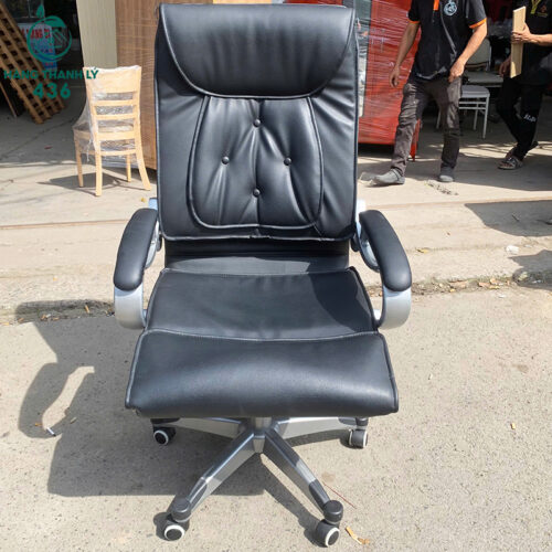 - Mô Tả: Đây là chiếc ghế làm việc lý tưởng cho những người thường xuyên phải ngồi lâu. Ghế có thiết kế cao cấp, đệm dày ở phần lưng và moóc giúp nâng cao cột sống, giảm mệt mỏi. Điểm đặc biệt nhất là khả năng biến thành chiếc ghế thư giãn (ghế tựa) chỉ trong tắc tắc: bạn có thể thư giãn phía sau và kéo đệm chân bên dưới ra để nghỉ dài ngay tại văn phòng mà không cần đi đâu xa. Ngoại có thể điều chỉnh mức độ hoạt động và ứng dụng xoay 360 độ. Hãy mua chiếc ghế này để bạn đầu tư cho sức khỏe và sự thoải mái thoải mái trong giờ làm việc trong suốt.