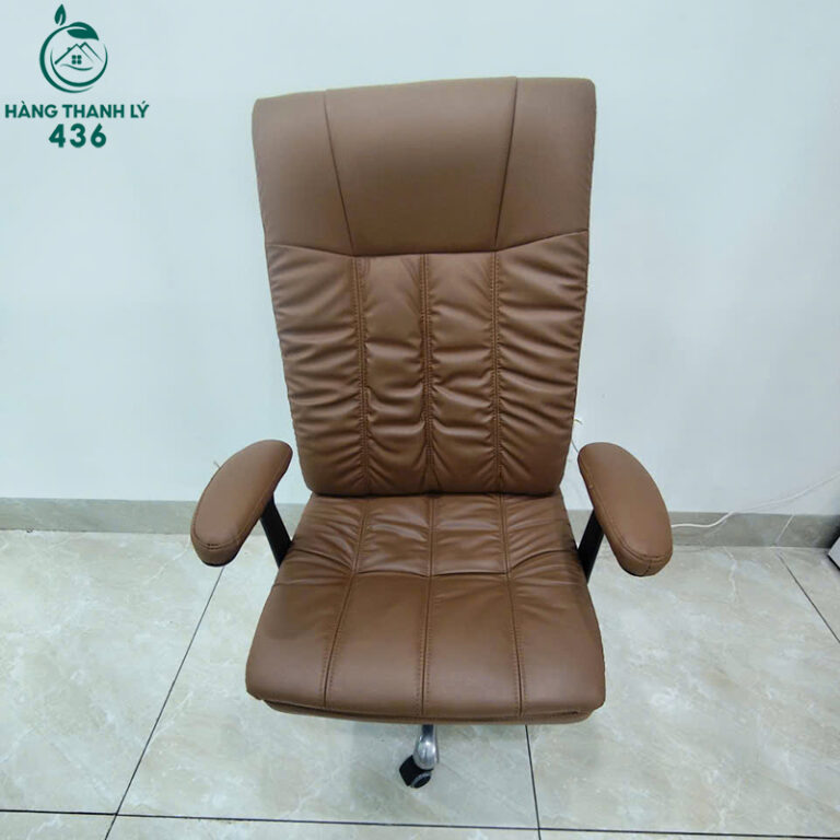 - Mô Tả: Chiếc ghế giám đốc này mang lại sự chuyên nghiệp và thoải mái tối đa cho người sử dụng. Ghế được bọc da cao cấp màu nâu, vừa sang trọng, vừa dễ dàng lau chùi vệ sinh. Lưng ghế cao với thiết kế ôm sát cơ thể, đệm dày và êm ái, giúp hỗ trợ tối đa cột sống và cổ, giảm mệt mỏi khi ngồi làm việc trong thời gian dài. Chân ghế mạ crom sáng bóng, chắc chắn cùng với hệ thống bánh xe xoay linh hoạt, giúp bạn di chuyển dễ dàng quanh bàn làm việc. Đây là sản phẩm thanh lý chất lượng, giúp nâng tầm không gian làm việc.