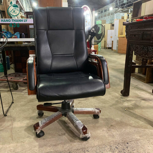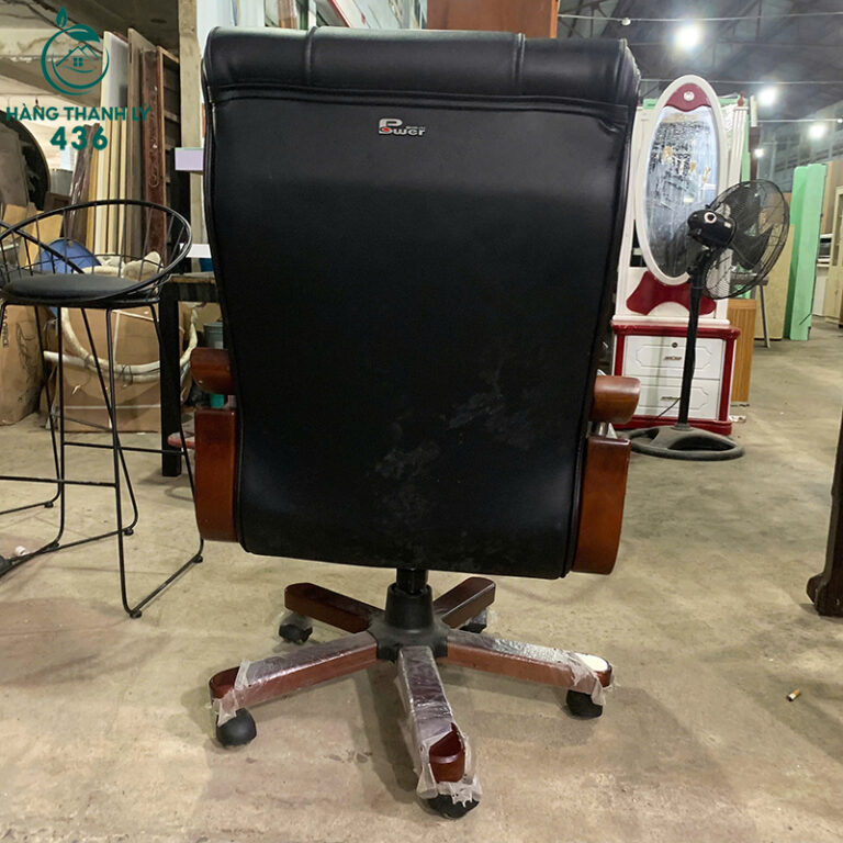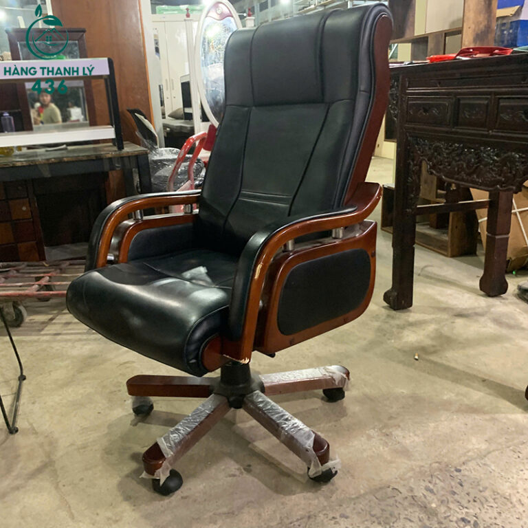 - Mô Tả: Đây là chiếc ghế xoay lãnh đạo bọc da đen, còn mới đến 90%, giúp bạn có chỗ ngồi làm việc thoải mái cả ngày dài. Ghế được thiết kế lưng cao, có đệm dày và tay ốp gỗ đẹp mắt, hỗ trợ tốt cho lưng và cổ, tránh mỏi khi ngồi lâu. Chân xoay có bánh xe giúp di chuyển linh hoạt trong phòng làm việc mà không cần đứng lên. Mua ghế thanh lý giúp bạn tiết kiệm chi phí lớn mà vẫn sở hữu sản phẩm chất lượng, có thương hiệu.
