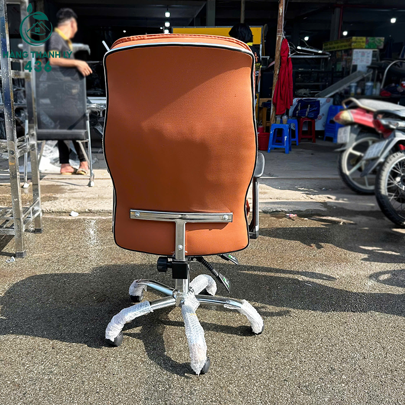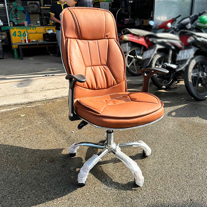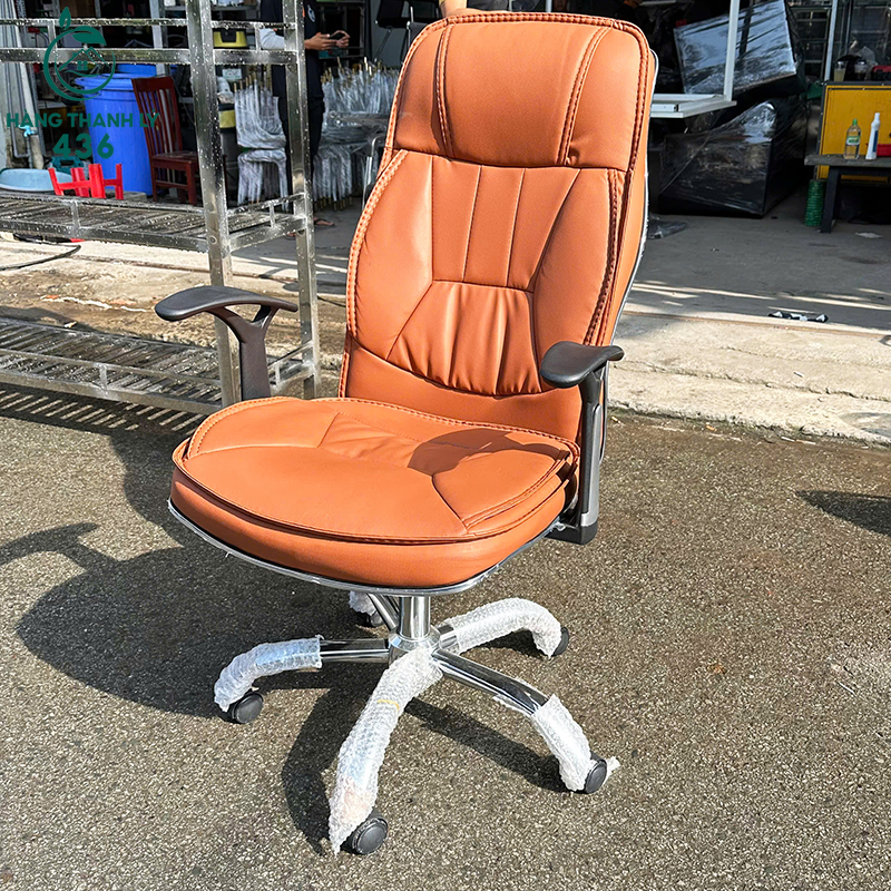 - Mô Tả: Chiếc ghế Giám Đốc này có thiết kế sang trọng, bọc lớp da công nghiệp cao cấp màu nâu cam ấn tượng. Lưng ghế cao, đệm ngồi và tựa lưng dày dặn, có các đường may múi nổi tạo cảm giác êm ái, hỗ trợ tối đa cho người ngồi lâu. Tay vịn cố định được làm từ nhựa cứng cáp, mang lại sự ổn định. Ghế tích hợp cần hơi để điều chỉnh độ cao và chức năng ngả lưng, lý tưởng cho không gian làm việc chuyên nghiệp, đẳng cấp.