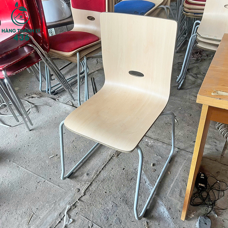 - Mô Tả: Chiếc ghế này sở hữu thiết kế hiện đại, tối giản với phần lưng và mặt ngồi liền khối, uốn cong nhẹ tạo cảm giác thoải mái khi sử dụng. Chất liệu chính là gỗ công nghiệp phủ veneer màu vân gỗ sáng, vừa tạo sự thanh lịch vừa dễ lau chùi. Khung chân ghế làm từ kim loại sơn tĩnh điện màu xám, dạng khung ống liền giúp ghế chắc chắn và bền bỉ. Phía tựa lưng có một khe hở nhỏ tiện cho việc di chuyển ghế dễ dàng hơn. Với kiểu dáng gọn gàng và trọng lượng nhẹ, ghế rất phù hợp sử dụng trong các không gian như phòng họp, phòng học, khu vực chờ hoặc quán cà phê.