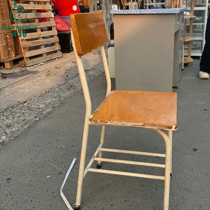 Mô Tả: Mẫu ghế học sinh này phù hợp dùng cho học sinh, sinh viên, phòng học tại nhà hoặc các lớp học nhỏ. Ghế thiết kế đơn giản, dáng gọn, dễ sắp xếp số lượng nhiều mà không chiếm diện tích. Mặt ngồi và lưng tựa bằng gỗ giúp ngồi chắc, không bị võng. Khung sắt cứng cáp, có thanh gác chân tạo cảm giác ngồi ổn định hơn khi học lâu. Ghế đã qua sử dụng nhưng còn dùng tốt, kết cấu chắc chắn, không lung lay, đặt vào sử dụng ngay không cần sửa chữa.